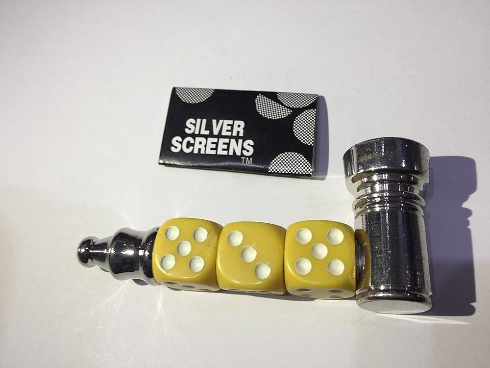 Pipa metálica con rejilla + respuestos con diseño dorado y 3 dados
